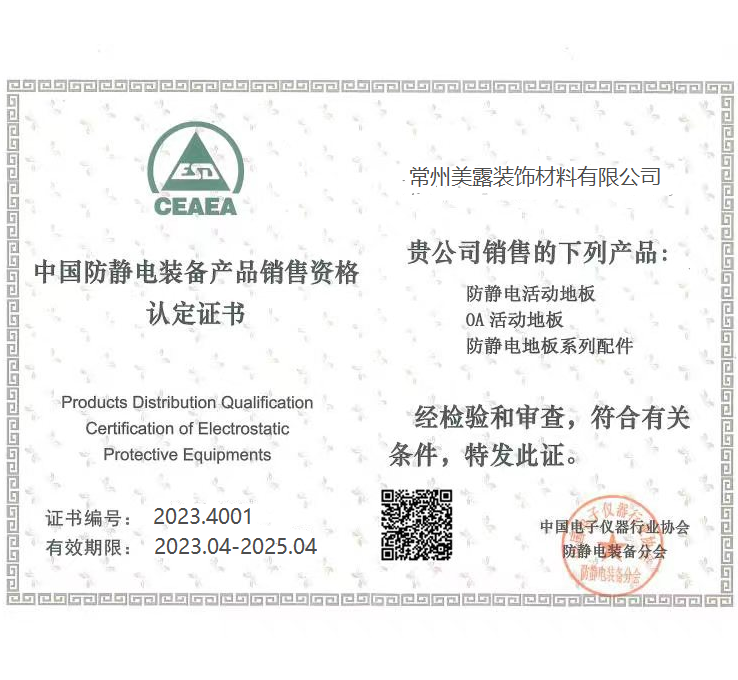 中國防靜電裝備產品銷售資格認定證書